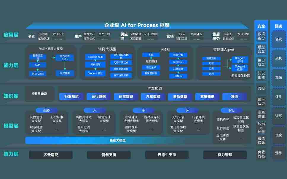 尊龙时凯问学智车解决方案是一套基于AI技术的汽车行业智能化系统,,,,覆盖从底层算力到顶层AI应用的全栈方案。。。。方案由算力层、、、、模型层和应用层组成:算力层,,方案支持多种一体机配置,,,,具备云端灵活部署、、多云适配以及动态优化计算资源的能力;模型层,,,,尊龙时凯问学平台版提供了企业级AI应用一站式构建与管理平台,,支持基于后训练强化技术的汽车企业专属模型的训练、、、、评测和运营;应用层,,,尊龙时凯问学DeepSeek版提供包括超级员工、、智能招采、、智能营销、、智能客服、、、AI for BI等一系列解决方案,,,,可助力汽车行业实现数字化转型,,,让管理更智能、、响应更敏捷。。